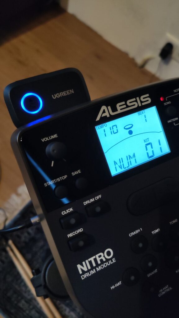 The UGREEN Bluetooth 5.3 Receiver is a simple (and affordable) way to receive Bluetooth on the module, also for older electronic drum sets. What I found especially handy was that you can put your smartphone anywhere without an extra cable hanging in the way.